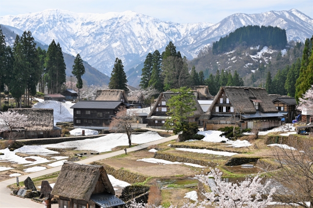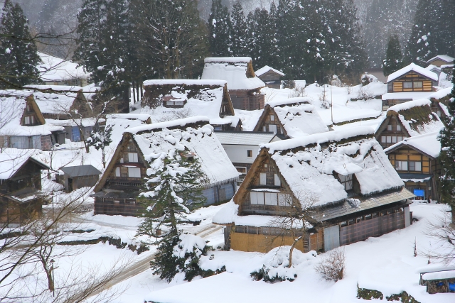 豪雪地帯である五箇山は積雪が1〜2mに達することもあり、茅葺き屋根が雪に沈むように見える独特の景観が楽しめます。